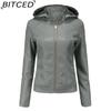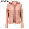 BITCED Plus Size Fleece-Lined Women's Leather Jacket with Hood Autumn/Winter Short Coat Warm Casual Jacket
