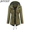 BITCED Lightweight Trench Coat Mid-Length Hooded Jacket Long Sleeves Fitted Waist Outdoor Rainproof Clothing