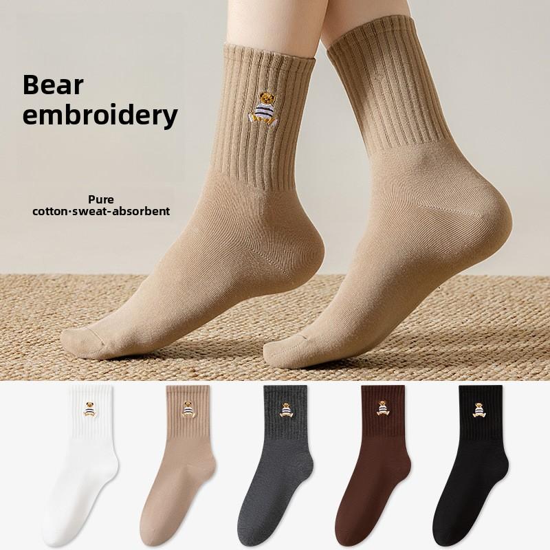 Damen Herbst Baumwolle Cartoon Stickerei Niedlicher Bär Deodorant Antibakteriell Mittelhohe Socken Socken