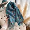 New Soft and Warm Cashmere Like Blue and Black Leaf Print Tassel Scarf High End Women's Scarf