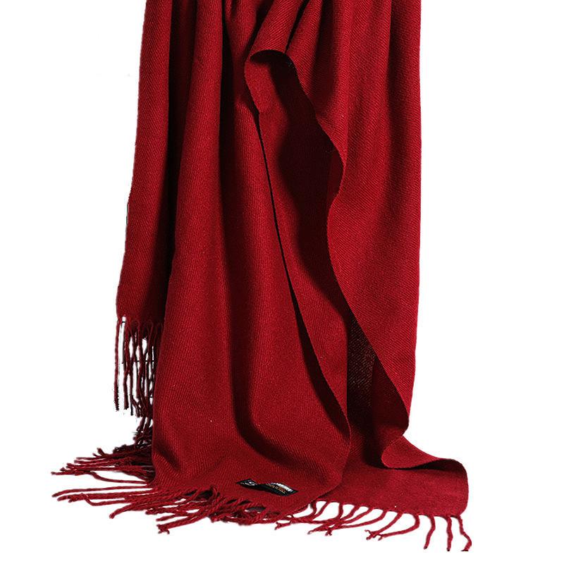 Imitation Cashmere Scarf for Women Winter Warm Thickened Solid Color Unisex Burgundy Dark Red Solid Color Tassel Scarf