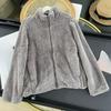 Herbst- und Winter Damen Langstapel-Polarfleece-Reißverschlussjacke Plüsch-Cardigan Korallenfleece-Jacke