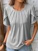 Damen Casual Kurzarm Rundhals Spitzen-T-Shirt Einfarbig Plissiertes Sommeroberteil