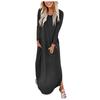 Fashion Womens Loose Long Sleeve Long Dress Round Neck Slit Pocket Ladies Dress