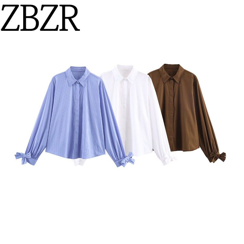 Za Autumn New Women clothes 2025 Western Style Fashion Loose Long sleeve Bowknot Decoration Poplin Shirts 7969251