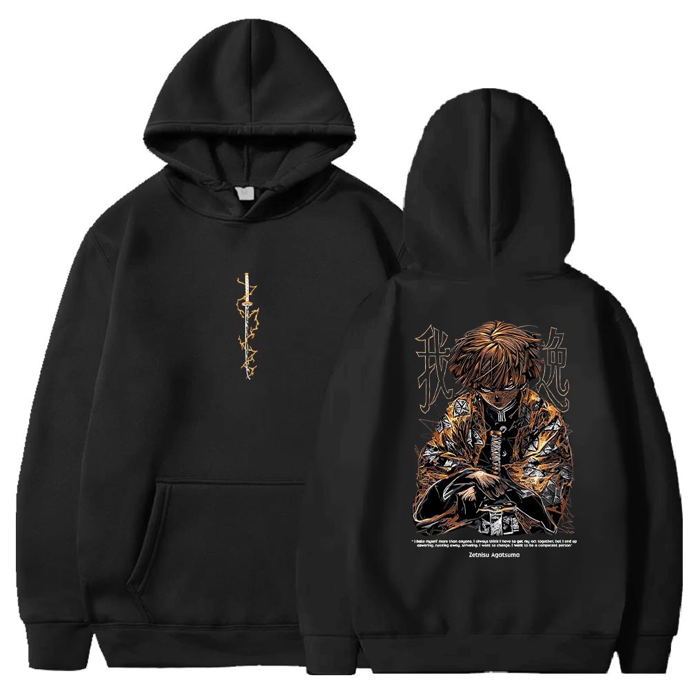 Manga Demon Slayer Zenitsu Graphic Hoodies for Men Women Clothing Fall Winter Fleece Loose Sweatshirts Casual Hooded Streetwear