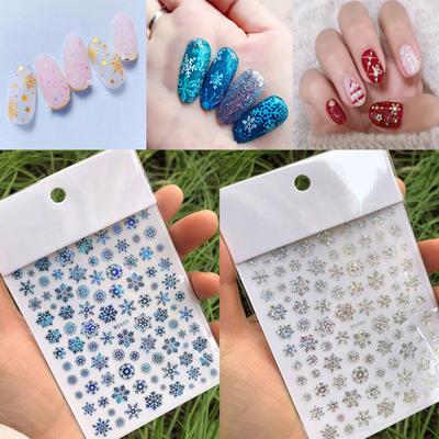 Nagelaufkleber im Weihnachtsstil mit Schneeflockenmuster, lebendige Bilder, weißer Schnee, geprägter Aufkleber, Weihnachtszauber für die Maniküre