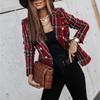 Damen Karo Anzug Satinjacke Formaler Cardigan Tasche Arbeitsanzug Mantel