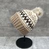 2025 Herbst und Winter neu warme Mohair Strickmütze gemischte Farbe geometrisches Rauten Jacquard Bommel Wollmütze Wintermütze Damen