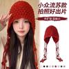 Roter Fransenwollhut Herbst und Winter großer Kopfumfang warm und kleines Gesicht handgefertigt kältefest gestrickter Hut Ohrenschutzhut Kinder