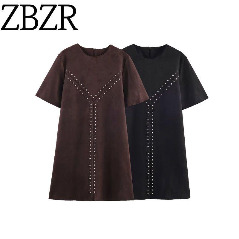 Za Autumn New Women clothes 2025 Western Style Fashion Suede Effect Rivet Dress 1058632 716