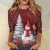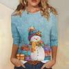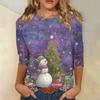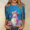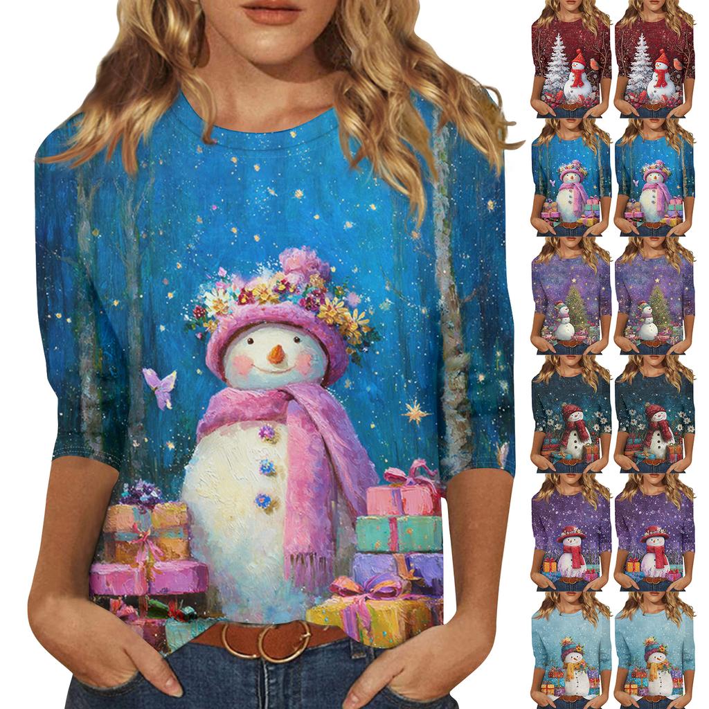 3/4-Ärmel-Shirts für Damen Druck Weihnachts-T-Shirts Blusen Lässig Übergröße Basic-Oberteile Pullover