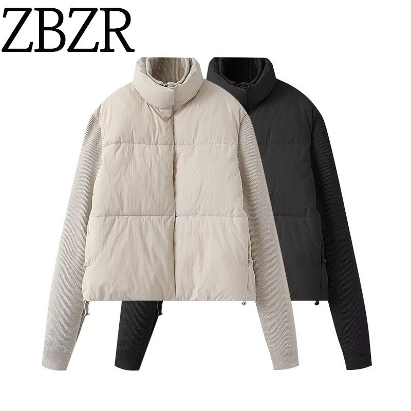 Za Autumn New Women clothes 2025 Western Style French style Design Knitted Patchwork Cotton-padded jacket Outerwear 0518258