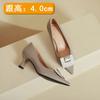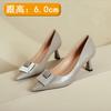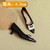 Spitze High Heels Damen Dünne Absätze 2025 Neu Mittelhoher Absatz Frühling und Herbst Damenschuhe Schwarz Temperament Weiches Leder Französisch Leichter Mund Einzelner Schuh