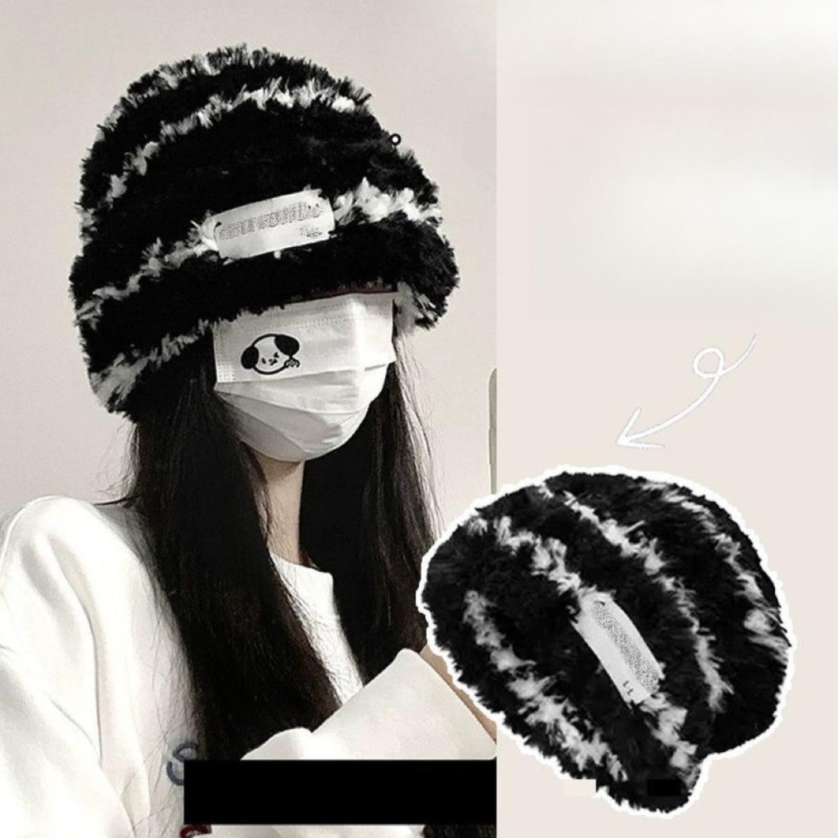 Hut, Damen, Gestreifter Hut, Großer Kopfumfang, Strickmütze, Wollmütze, Warme Mütze, Kalte Mütze, Verdickt, Verdickt