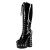 15cm Kette dekorative Plateau Kniehohe Stiefel Lackleder runde Zehen dicke Absätze Punk-Stil erhöhte Trendstiefel