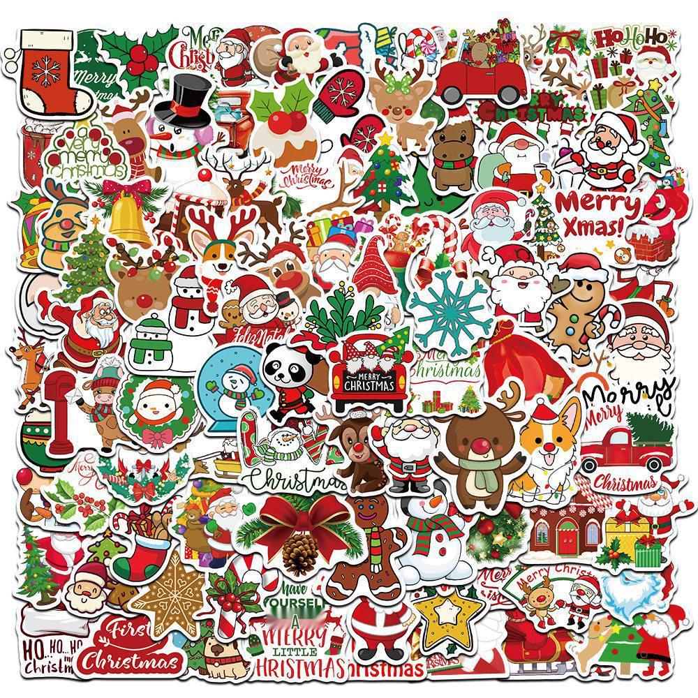 100 Einzigartige Weihnachts-Cartoon-Graffiti-Sticker für Notizbücher, Koffer und Roller