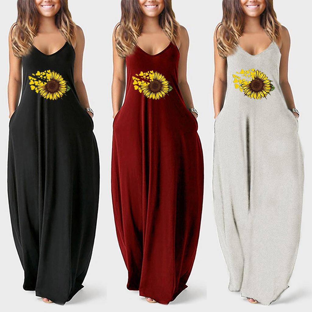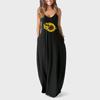 Damen Übergröße Sonnenblumen-Print Sexy Tiefer V-Ausschnitt Träger Langrock Freizeitkleid