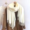 Winter Solid Color Wool Scarf for Women New Versatile Tassel Fashion Warm Neck Scarf Comfortable Real Wool Scarf
