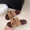Retro tassel fluffy slippers women's 2025 autumn new outer wear casual versatile casual soft bottom lazy one-word drag