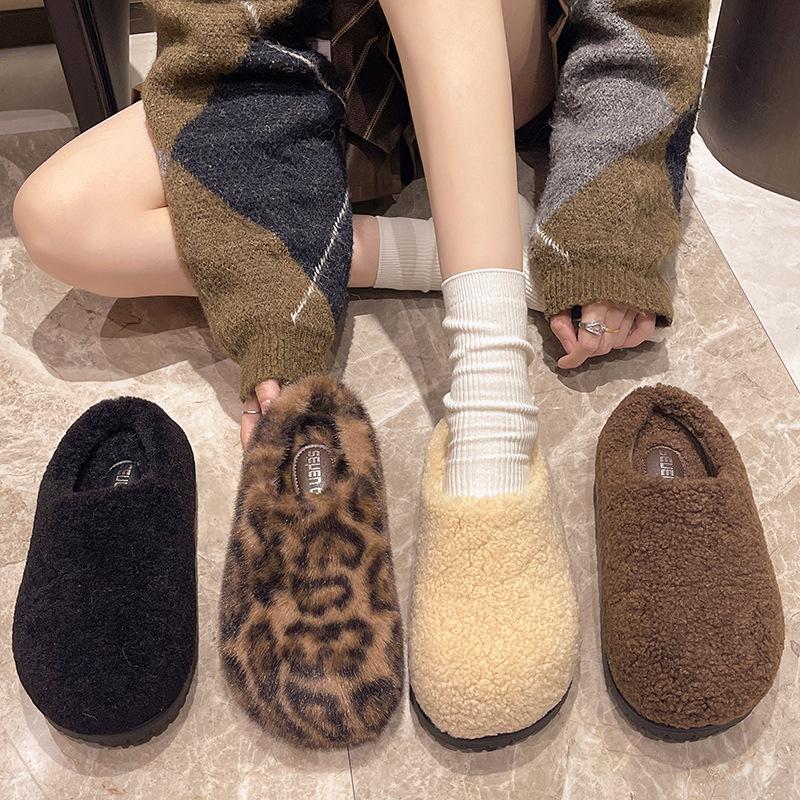 High Sense Internet Celebrity Explosion Leopardenmuster Flauschige Hausschuhe Damen Herbst- und Wintermode 2025 Neu Dicke Sohle Erhöhend Taschenkopf Hausschuhe