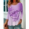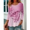 Round Neck 3D Love Printed Top Casual Long Sleeved Women's T-shirts - Soft Medium Stretch Polyester Fabric Spring and Autumn Relaxed Fit Clothing