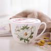 600ml Tasse aus Knochenporzellan mit großem Fassungsvermögen - Blumige Keramiktasse für Milch, Haferbrei, Frühstück, ofen-, mikrowellen- und spülmaschinengeeignet