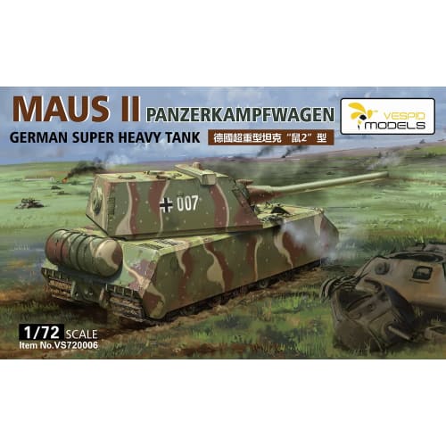 Product introduction Vespid model "1/72 German Army Panzer 8 Maus 2 Super Heavy Tank" plastic model.The Mouse 2, which is a paper plan of the No. 8 super heavy tank Mouse equipped with a Krupp turret and equipped with sloped armor in consideration of shot traps, has been made into a 1/72 scale three-dimensional model.The main hatch can be opened or closed, and the tracks are link-and-length.Comes with new mold parts such as a turret, metal gun barrel, photo-etched parts, and 3 types of markings.*This product is a plastic model that requires assembly and painting.*Adhesive, tools, paint, etc. are required separately for assembly and painting.*"Plastic model" is a registered trademark owned by the Japan Plastic Model Industry Cooperative.Safety Warning Not applicable