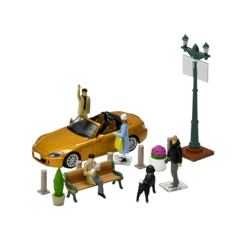 TOMYTEC DioColle 64 #CarSnap 22a Urban Street Corner 2 ABS Resin/PVC Figure and Accessories (Painted, Partially Assembled) + Die-Cast Miniature Car Se