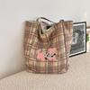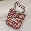 1 Wind Retro Karomuster Tragetasche Canvas Tasche Große Kapazität Studentenklasse Schultertasche