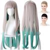 Long Straight Lamb Cosplay Wig with Adjustable Wig and Wig Net Green Set, (Ash Blend)