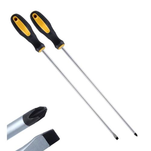 12-Zoll Langer Schraubendrehersatz mit Magnetisch, Kreuzschlitz & Schlitz, Dünner Schaft (6mm), Einstellbare Strahlachse, Silikongriff, für Präzisionsarbeiten in engen