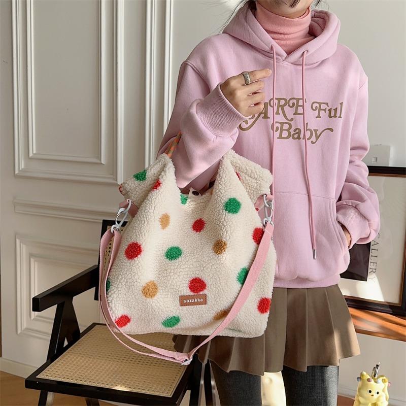 11 Retro Herbst- und Wintermode Gestreifte Plüsch Studentenhandtasche Große Kapazität Schulter Umhängetasche