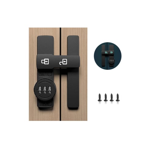 [High-quality materials] This product is made of solid and durable zinc alloy.It is difficult to deform, moisturize and prevent rust.You can fully ensure quality and service life.[Fluorescent design] The product's light lock logo uses fluorescent design.During the day, the lock logo is white, but at night or in dark places it turns into night light mode, clearly indicating the lock position, very suitable for the elderly and families with children.[Anti-theft] Effectively prevents theft even if there is a large gap between the doors.By setting a password, you can increase the anti-theft effect.(Note: This product is for indoor installation only).[Easy Installation] Mark the installation location, rotate the screw, tighten the screw with a screwdriver, rotate the crossbar, rotate 45° to lock the screw.Please see the instruction manual and video tutorial for more details.[Wide application] Suitable for doors, cabinets, drawers, sliding doors, screens, etc.Also can be used for wooden doors, aluminum alloy doors, metal doors and other types, holes.For hard doors, you need to punch them for installation in advance.