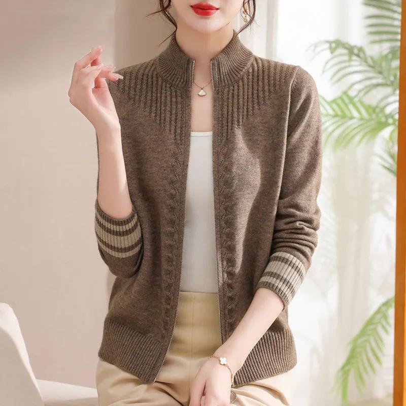 Jacke Gestrickte Strickjacke Damen Frühling und Herbst Stehkragen Reißverschluss Pulloverjacke Locker Kurz Reißverschluss Oberbekleidung