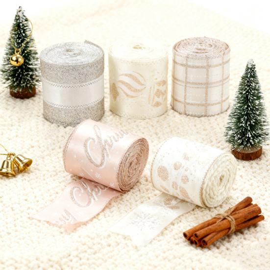Champagnergoldenes Weihnachten Drahtband mit Glitzerkanten 2,5 Zoll Satinband für Hochzeit Weihnachtsbaumdeko Geschenkverpackung Schleife Kranz Girlande DIY Basteln