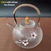 Handgefertigte Teekanne aus hitzebeständigem Glas im chinesischen Stil mit Pflaumenblütendesign – Hitzebeständiger Blumen-Teekessel mit Henkel
