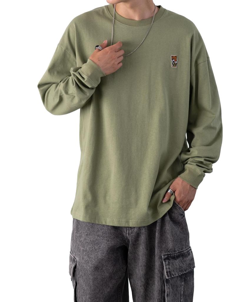 IMPROMES Casual SIDEWAYSTANCE Embroidered Downer Bear Long Sleeve T-Shirt, Men's, Khaki