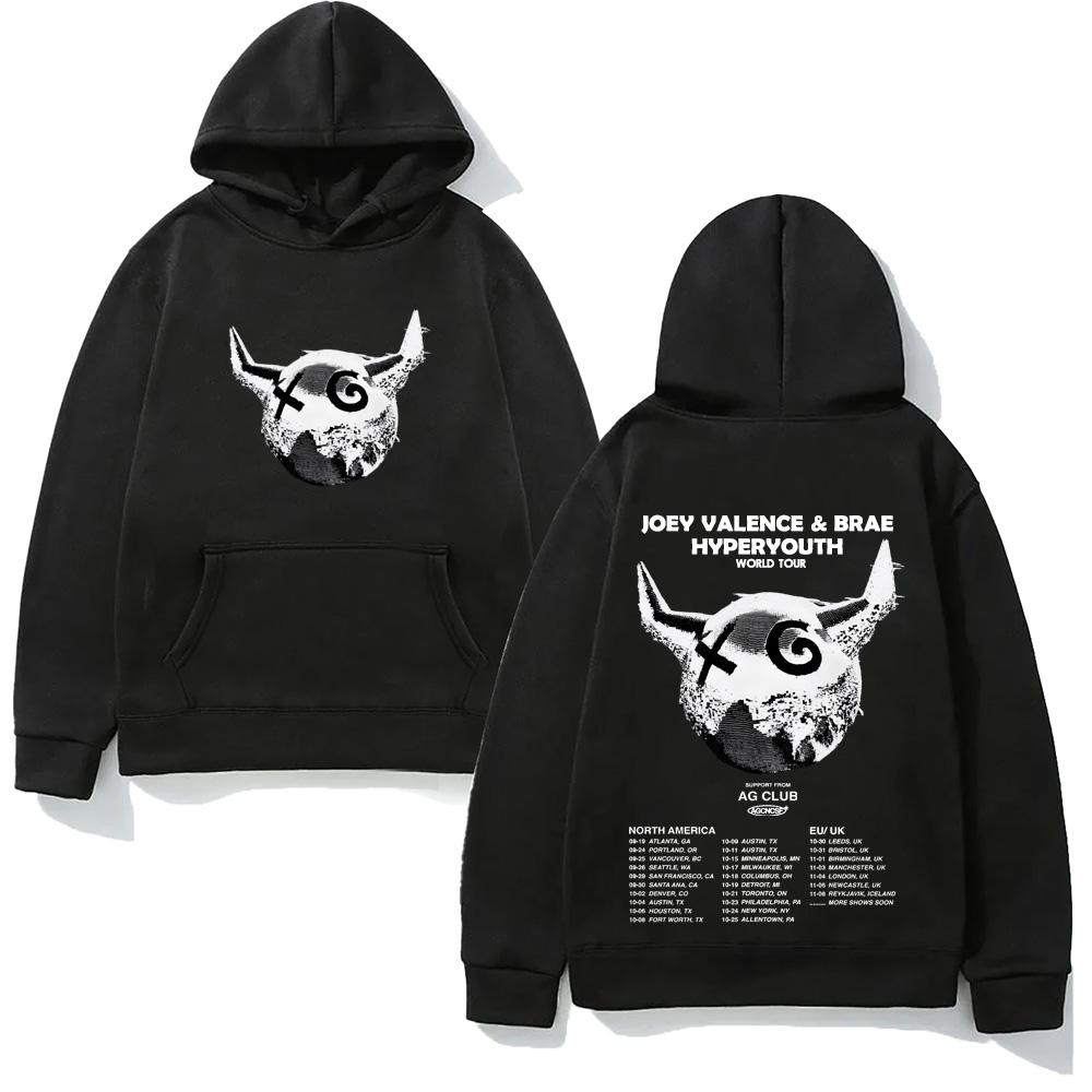Joey Valence 2025TOUR Mode Kapuzenpullover mit Tasche Grunge Bequeme Sweatshirts Langarm Gothic Kleidung Moletom Punk Weicher Kapuzenpulli