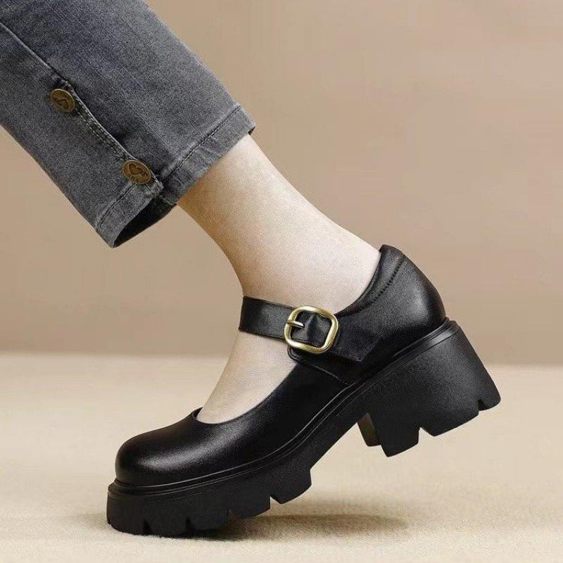 2025 Kunstleder Neue Low-Cut Ein-Wort-Pumps Dicksohlige Mary Platform Bequem Weiche Sohle Runde Spitze Damenschuhe