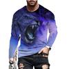 Rundhals 3D Tierdruck Oberteil Lässige Langarm Herren T-Shirts - Weicher Mittlerer Stretch Polyesterstoff Frühling und Herbst Relaxed Fit Kleidung