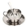 Verbrühschutz Edelstahl Kaffeetasse Becher Tassen mit Löffel Untertasse Set Geschirr