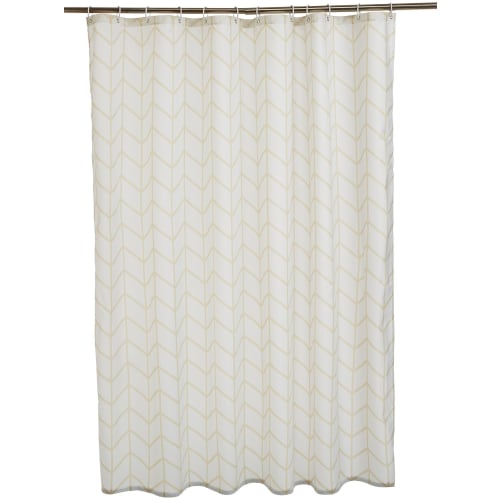 Basic Shower Curtain, Mildew Resistant, with Hooks, 183x183cm, Natural Herringbone