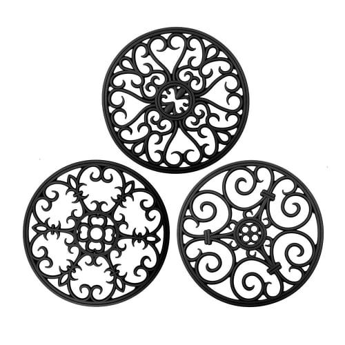 IYYI Trivet, Silicone Pot Holder, Heat-Resistant Pot Holder, 3-Piece Set, Multi-Purpose Silicone Mat, Waterproof, Insulating Pad, Non-Slip Trivet (Bla