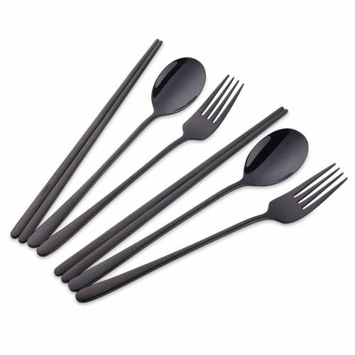 Do Buy Korean Cutlery Set for 2, Chopsticks, Spoon, and Fork, 18-8 Stainless Steel with a Mirror Finish, Black