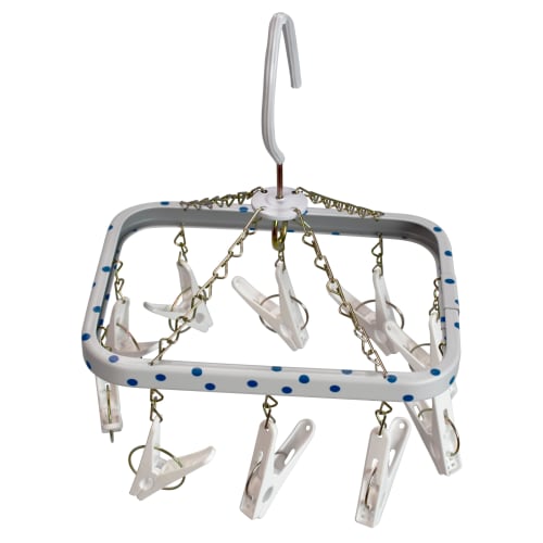 Nishida Mini Square Laundry Drying Hanger, Polka Dot Blue, W20 x D15 x H26.5cm, Steel Frame for Durability and Longevity, N67722