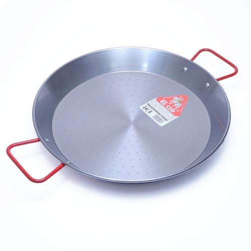 EL CID Spanish Paella Pan with Red Handle, Professional Paella Pan with Recipe, 34cm, Serves 6