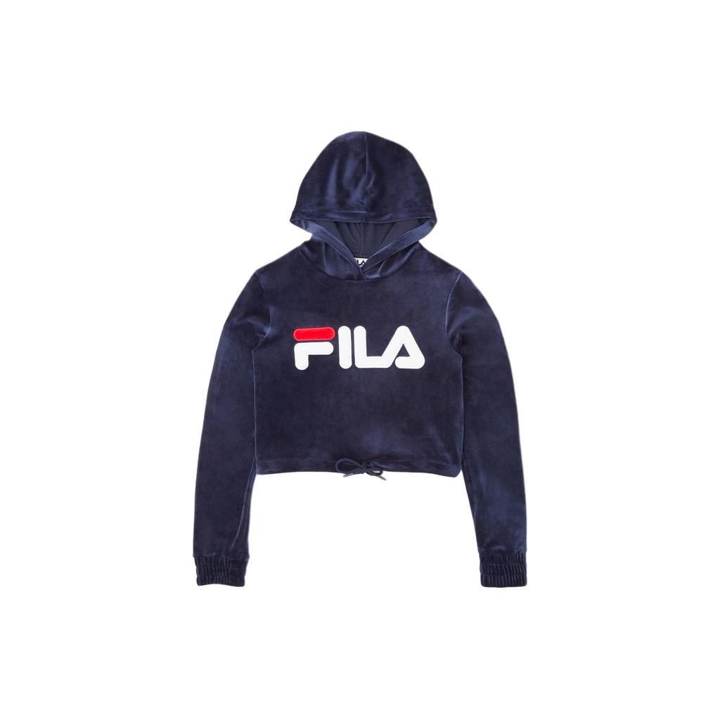 New FILA Aitana Crop Velour Hoodie Sweatshirt Women's Marine Blue LW932642-410