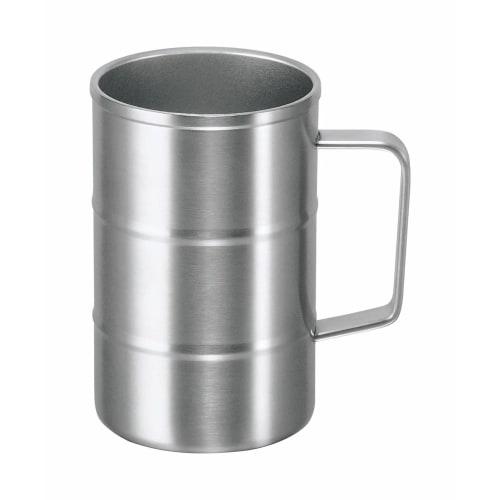 Kakusei Trommelförmiger Becher, 380 ml, Silber, Doppelseitige Vakuumisolierung, Isoliert heiße und kalte Getränke, Griffiger Henkel, Kondensationsbeständig und hält