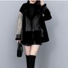 Damen Stilvoller Lockerer Gespleißter Kunstpelzmantel Kurze Lederjacke Warme Winteroberbekleidung